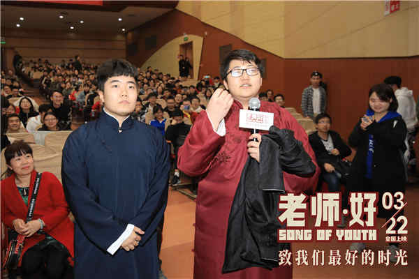 电影《老师·好》首次面向观众放映 主创分享创作初衷路演首站到达西安,电影《老师·好》面向观众首次正式放映,长安大学的过千名学子成为幸运观众,第一时间“独享大餐”。放映过程中,不断传来观众的笑声与抽泣声;电影结束后现场同学爆发持久掌声,齐呼“幽默又感动”。就在大家意犹未尽之时,电影《老师·好》主创集体上台,瞬间将千人大礼堂热情点燃。面对同学们的热情,影片监制兼主演于谦则谦虚面对观众,他希望每一位观众对影片、对演员的表演都能提出宝贵的意见,他表示:“希望能从观众的声音中听到自己的不足,在下一次的表演中尽量改正。”同时他还在现场呼吁:“希望大家支持我们,《老师·好》需要当代年轻观众的发声。”