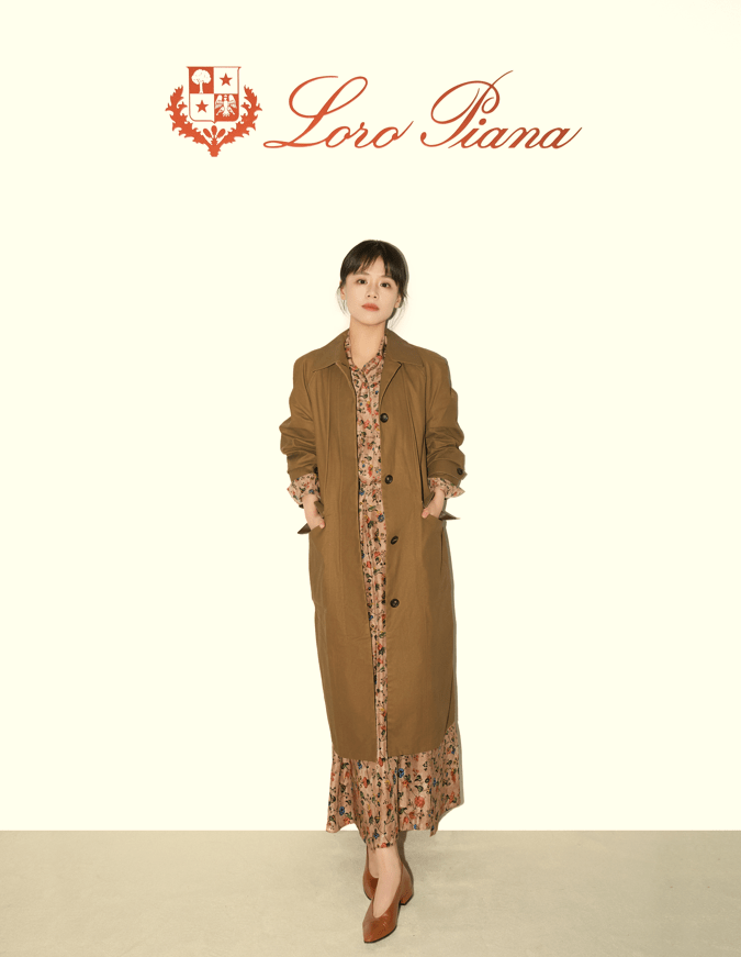 演员马思纯身着Loro Piana 2023秋冬系列纳斯卡土色风衣外套、印花衬衫及半裙,搭配棕色芭蕾舞矮跟鞋,复古摩登,耀现多面魅力。